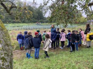Im Rahmen der Sachunterrichtsreihe „Gesunde Ernährung“ im September ging es für die Kinder der Stufe 1/2 zum Kölner Bio-Bauern. Am Ziel angekommen, frühstückten die Kinder auf dem Hof und besuchten die Ziegen, Kaninchen und Schweine. Zunächst nahmen die Kinder an Hofführungen durch Feld, Gewächshaus und Bio-Garten teil. Sie probierten saisonales Obst- und Gemüse, erfuhren, warum regionale Lebensmittel gut für unser Klima sind, und lernten die für den Dünger verantwortlichen etwa 150 Hühner des Bauernhofs kennen. Auch die Fragen der Seehundklasse, die die Kinder im Vorfeld gesammelt hatten, konnten beantwortet werden und viele Fotos wurden von den Kindern gemacht — seht selbst!